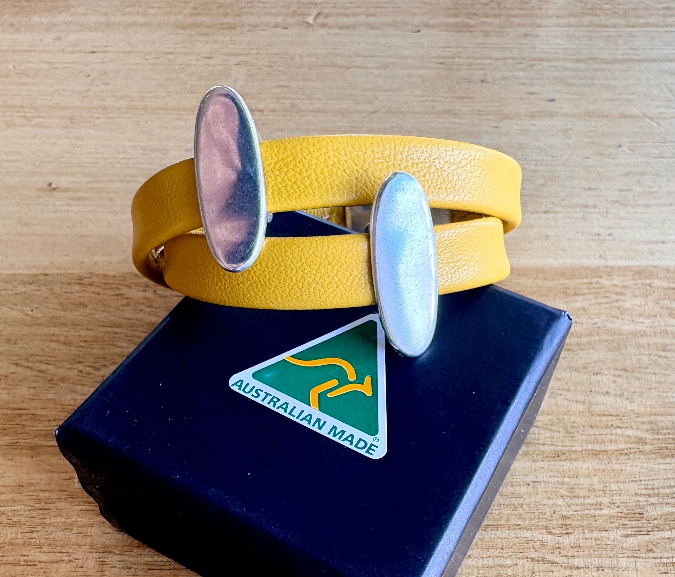 Leather bracelets, double wrap around the wrist, are handmade to order with the softest Scandinavian reindeer leather and come with two oval slightly hammered silver sliders.