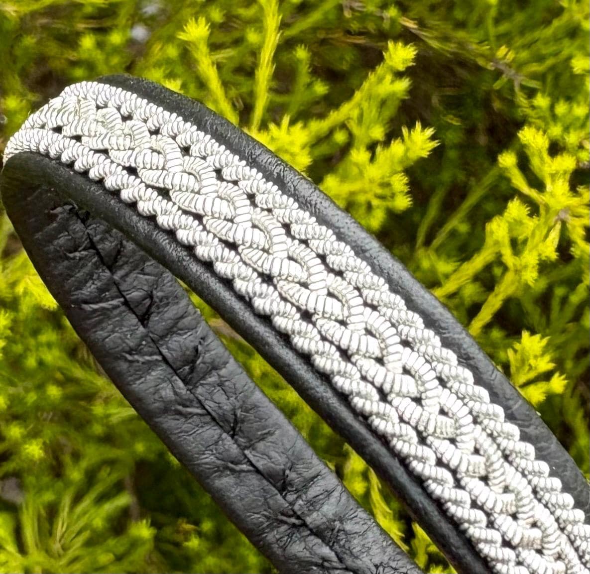 Our jewellery is made of naturally tanned reindeer leather, high quality spun pewter and silver threads (nickel free). The braid in the middle of the borders are made with flat pewter, giving it a more shiny and vintage look.